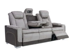 Manali Gray Leather Dual Power Recliner 2 Pcs Set