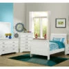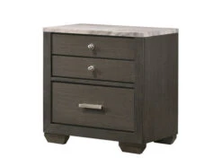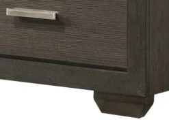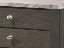The Alana Bedroom Collection offers a linear padded headboard with chromed trim, along with faux Marmol case good tops, adorned with two different drawer handle styles to provide a special style for this bedroom set.