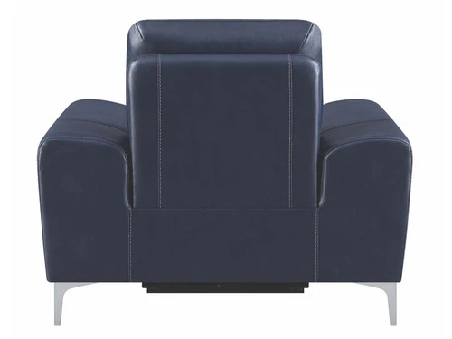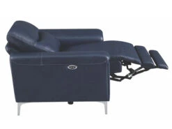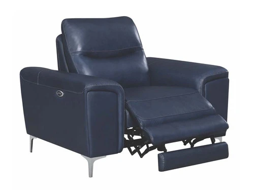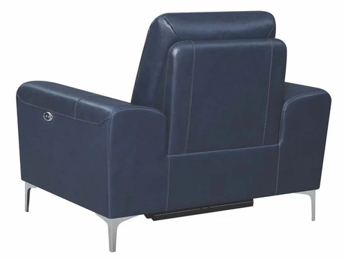 Complete your living room’s lounge space in style with this gorgeous, leather match power recliner. Also available in a white color. Its plush, padded seat is enhanced by a Certi Pur certified memory foam topper for added comfort. Its sleek, metal legs are finished in polished stainless steel for a brilliant touch of shine. This contemporary recliner comes complete with a built-in USB port for your convenience.