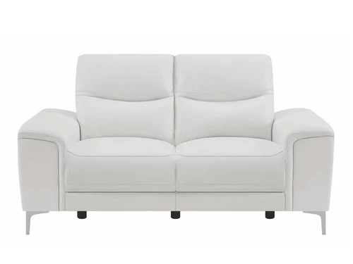 Enjoy countless hours of leisurely lounging with this chic, dual reclining loveseat. Equipped with power motion functionality, it’s a stylish and sensible choice. A built-in switch panel with USB conveniently charges electronics while keeping them within arms’ reach. A Certi Pur certified memory foam topper and smooth, buttery, top grain leather match upholstery offer unparalleled softness and comfort. This contemporary power loveseat is also available in blue color to enhance your personal style.