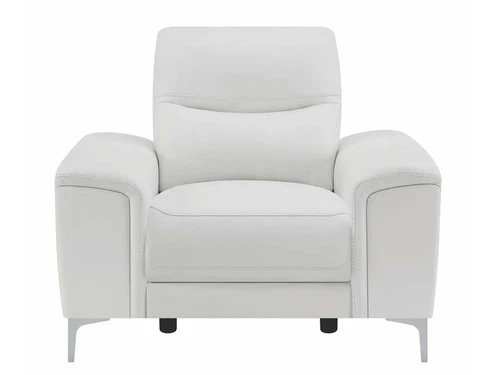 Complete your living room’s lounge space in style with this gorgeous, leather match power recliner. Also available in blue. Its plush, padded seat is enhanced by a Certi Pur certified memory foam topper for added comfort. Its sleek, metal legs are finished in polished stainless steel for a brilliant touch of shine. This contemporary recliner comes complete with a built in USB port for your convenience.