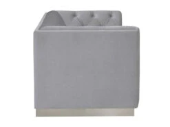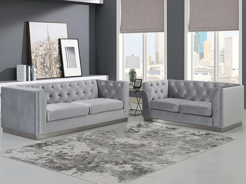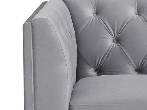 This modern style of set has padding on the outer arms and backs which allows you to float the pieces in an open-plan room. Button quilting on the arm panels, inside arms, and back adds style and comfort for an oh-so-modern look. The velvet fabric has that soft and smooth feel and comfort that adds to the beautiful design. This set will dress any room and give it that special touch of elegance.
