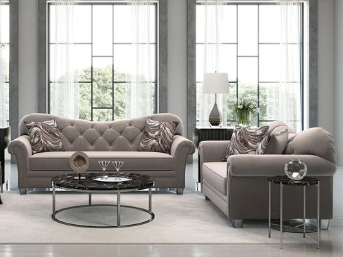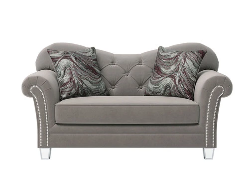 Dress up a formal living room with this plush Sofa Set. This beautifully designed sofa features shiny button accents and a tufted back. In addition, this elegant piece of furniture has beautiful acrylic legs, which provides a unique character. Accent pillows are included