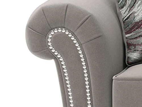 – Silver nailhead details.