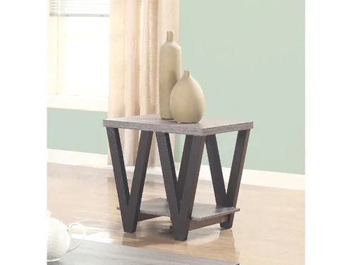 The antique gray & black ocassional set features mid-century modern style, storage shelves, and antique grey and black finish.