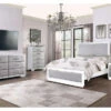 The Antonella set offers a sleek, luxury atmosphere to your bedroom, showcasing black Matte Italian accented by aluminum edges on the headboard and around the edges of the case goods, and unique, contemporary chrome handles. The bed enhances the brilliance of this bedroom set with its headboard embellished with LED lighting that brings out the beautiful, modern gloss of the black fronts, adding an aura of glamour.