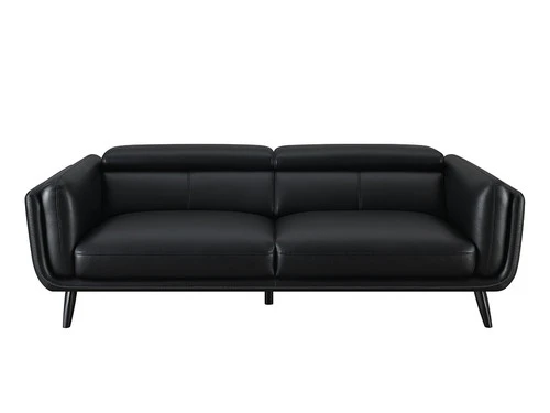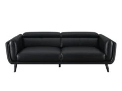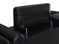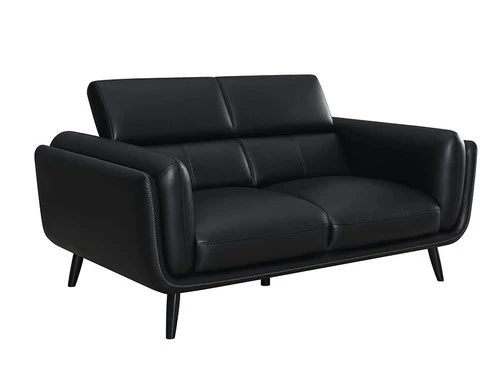 Make the most of tight living rooms with this sleek tuxedo-inspired contemporary living room set. Padded double-track shelter arms embrace you as you kick back and unwind along the plush attached seat cushions and tall back. Slender flared legs present a retro throwback as a smooth black leatherette modernizes the mid-century modern frame design. Contrast cross-stitching and top stitching offer a finishing touch. A magnificent masculine-leaning set for modern homes.