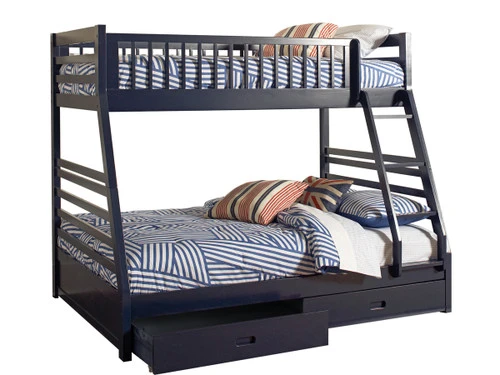 Perfect for a transitional space, this twin over full bunk bed is casual in style. Create a stunning visual with the supportive A-shaped frame, complete with decorative horizontal lines. Constructed of solid pine, the sturdy base is laid-back and versatile. The included two-drawer under bed storage.