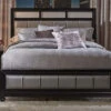 Barzini Collection includes the elegant, crafted from asian hardwood okoume veneer, black finish,upholstered in metallic velvet and crocodile leatherette. Individually hand placed nail head trim for an elegant look. Maximum weight capacity: 600 lbs. Boxspring is required.
