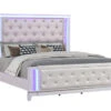 Inject some rock n’ roll glam into your bedroom with Barzini Bed. The pieces are constructed of Asian hardwood and veneers in a bold, white finish. This finish is paired with a unique and elegant metallic leatherette upholstery adorning bed that not only does this add intriguing style, but makes for a comfortable headrest as well.