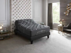 Beautyrests Black Luxury Adjustable Base allows you to adapt your mattress to best suit your comfort needs and the smart features you have add modern functionality to your bedroom space. – Can be used with standard bed if slats removed – Clearance height from bed to floor is zero – Includes wireless remote control and headboard brackets – Dual Timed Massage – Zero – G Position – USB Ports – Underbed Lighting – Amazon Alexa & Google Home Compatible – Adjustable Head and Foot – Lift capacity: 850 lbs. – Warranty: 20-year
