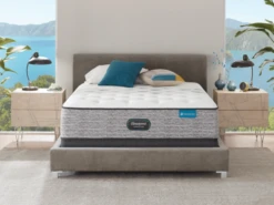 Beautyrest Harmony Lux Carbon Series features our latest innovations in support, comfort, and cooling that work together in harmony for a better night’s sleep. Its new and innovative coil design and support system, advanced pressure relieving foams, uniquely engineered cooling technologies and exclusive sustainable fabric technology makes this collection the ultimate choice in premium bedding. Featuring our RightTemp Wave Foam, our Harmony Lux Carbon Series sleeps cool and comfortable all night. Comfort layers:InfiniCool Lux – 1″ RightTemp Wave Foam – 1/2″ Firm Comfort Foam – 1/2″ Beautyrest Gel Memory Foam – 2″ Firm Comfort Foam. Support system: Powered by T2 Pocketed Coil Technology – BeautyEdge.