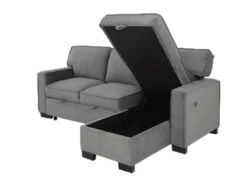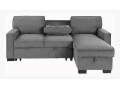 As practical as it is refreshingly modern, the Belen Sleeper Sectional. This L-shaped section features cushions to give you the best in comfort and support. The sofa on the side unfolds in the bed for your guests, and the other side rises to reveal storage for bedding and pillows, which makes it a very useful piece of furniture. This Sofa features a drop-down table with cup holders. This sectional can be assemble right or left according to your preference.