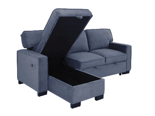 As practical as it is refreshingly modern, the Belen Sleeper Sectional. This L-shaped section features cushions to give you the best in comfort and support. The sofa on the side unfolds in the bed for your guests, and the other side rises to reveal storage for bedding and pillows, which makes it a very useful piece of furniture. This Sofa features a drop-down table with cup holders.This sectional can be assemble right or left according to your preference.