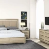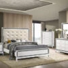Elegant touches abound with the design of the Belfast Collection. Alligator embossed veneer covers the collection and is finished in silver, an elegant palette that beautifully pairs with your bedroom’s accessories and bedding. The headboard is centered with a silver faux leather panel that features button tufting and LED backlighting. Each piece of the collection is framed with mirror trim, while the drawers are fronted with chrome-finished faux-diamond inlay bar hardware, each accent a perfect decorative touch to reflect your glamorous style.