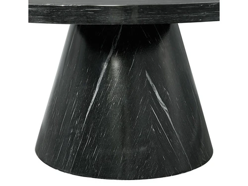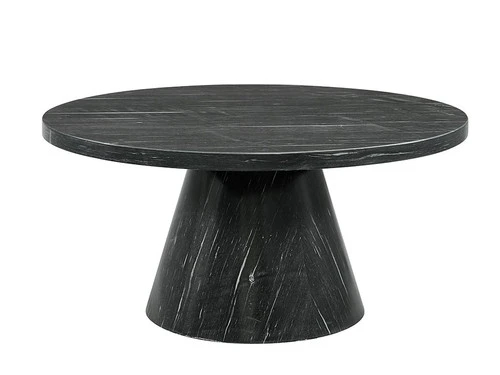 Give your room an upscale boost with the addition of this coffee table. The beautifull top made from faux marble and the sleek base cone shaped has a sculptural look for added aesthetic in any room. Table built with solid rubber wood.