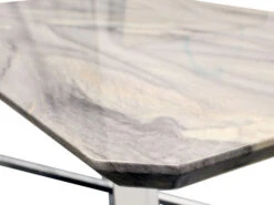Contemporary, chic and simplistic, this Faux marble Console table is a must have for yourliving space. Featuring a high gloss top with Marble detailing appeal this will be the perfect addition to your casual living area. The table has a stunning marble pattern on the top and a stainless steel base that gives it a contemporary, modern look.
