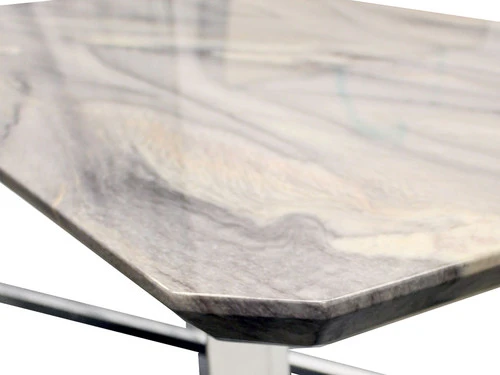 Contemporary, chic and simplistic, this Faux marble coffee table is a must have for your living space. Featuring a high gloss top with Marble detailing appeal this will be the perfect addition to your casual living area. The table has a stunning marble pattern on the top and a stainless steel base that gives it a contemporary, modern look
