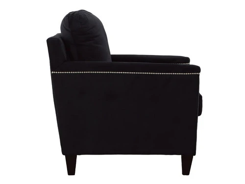 Make a design statement with this Transitional Modern chair, micro linier silver studded arm details along with multiple sized collection. Bold black and white accented graphics and coordinating chair options make this a perfect fit for any modern living environment.
