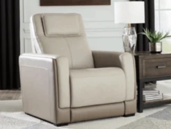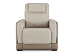 Double down on sleek style with this power recliner. It has a streamlined, space-conscious appeal, with two-tone upholstery in neutral hues creating subtly striking visual intrigue. And with one-touch reclining, an adjustable headrest, and wireless charging, this piece combines contemporary function and fashion into a single clean-lined design
