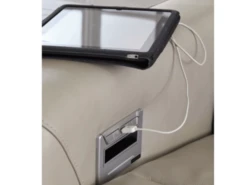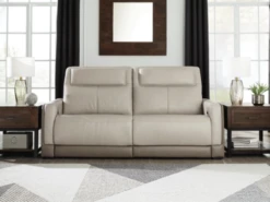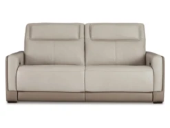 Double down on sleek style with this power reclining sofa. It has a streamlined, space-conscious appeal, with two-tone upholstery in neutral hues creating subtly striking visual intrigue. And with one-touch reclining, adjustable headrests, and wireless charging, this piece combines contemporary function and fashion into a single clean-lined design.