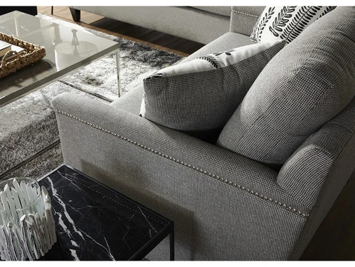 Make a design statement with this Transitional Modern, Caliente Peppershack 2 Pcs Set linier silver studded arm details along with multiple sized collection. Bold black and white accented graphics and coordinating chair options make this a perfect fit for any modern living environment.