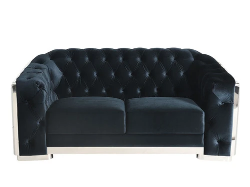 High style meets modern day living. Take notice of the quilting on the outside arms and backs of the chair. This allows you to float the piece in an open floor plan room. The button tufting on the arm panels, inside arms and backs adds style and comfort for such a modern look. The velvet fabric has that smooth and soft feel and comfort which adds to the beautiful design. The curved chrome outside framing is the final touch in this beautiful execution high style modern design.