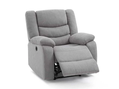 Any moment of the day, you can enjoy the ultimate in relaxation on the pillow-like back of this plush padded recliner chair. Blending contemporary and transitional lines, this stylish piece is draped in soft fabric for a remarkable look and feel.