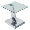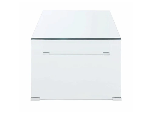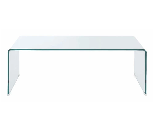 The clear occasional table set features clear finish, nickel and warm brown finish base, softly curved top edge.