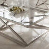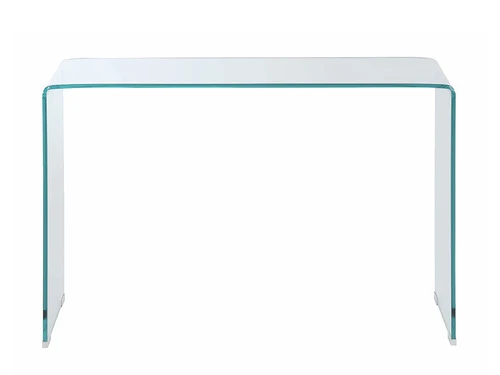The clear occasional table set features clear finish, nickel and warm brown finish base, softly curved top edge.