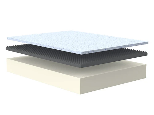 This mattress has a breathable mattress fabric cover with a polyester fabric, a layer of gel infused memory foam to absorb heat and distribute weight evenly, a comfort transition layer to avoid the runny feel of some memory foam mattresses, and a reinforcing and stabilizing base layer.