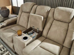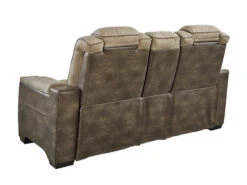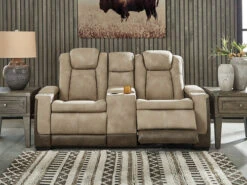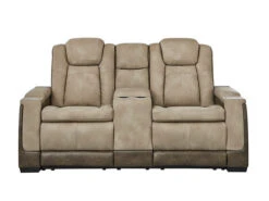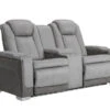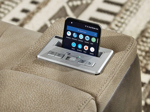 This sleek, ultra-modern power reclining Loveseat has it all. With designer looks and head-to-toe comfort, it has the upscale look of leather at a scaled-down faux leather price. Its gray two-tone upholstery is more durable and water-repellent than regular leather, an added bonus for families with children or pets. Features including wireless and USB charging, an adjustable headrest and a “zero-gravity” ottoman for improved circulation make this the next generation of power recliners.