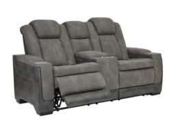 This sleek, ultra-modern power reclining Loveseat has it all. With designer looks and head-to-toe comfort, it has the upscale look of leather at a scaled-down faux leather price. Its gray two-tone upholstery is more durable and water-repellent than regular leather, an added bonus for families with children or pets. Features including wireless and USB charging, an adjustable headrest and a “zero-gravity” ottoman for improved circulation make this the next generation of power recliners.