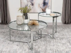With their nesting design, crystal tops, and chrome legs, these coffee tables provide a perfect balance of style and functionality. They elevate the ambiance of your living room while offering versatility and practicality for everyday use.
