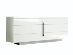 The Eva Collection, is an elegant collection that will give your living space a true taste of Italy. The Eva White Bed has a high gloss finish that reflects natural light and brings out the color. Matching case pieces feature chrome accents and easy touch closure and drawer stops.