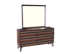 Make a modern statement with the Greentown collection. This exclusive RANA bedroom features Modern styling and practical scaling for today’s smaller bedrooms. This chic contemporary group includes a platform bed and is well designed with convenient features including a slide out jewelry tray in the dresser and cup holder in the nightstand. Crafted of pine solids with a low sheen brushed brown finish, the suite has details throughout emphasizing the organic and natural look. Fasteners hold together better in solid wood which will result in less twisting of the cases and better drawer operations. Drawers are sanded and finished providing a no snag interior which protects clothing