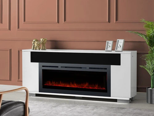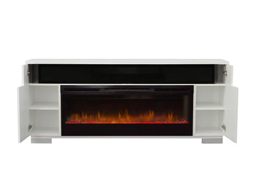 Console with electric fireplace insert, on/off control. It has LED lighting system. Modern and unique contemporary design, perfect to make your living room a cozy place.