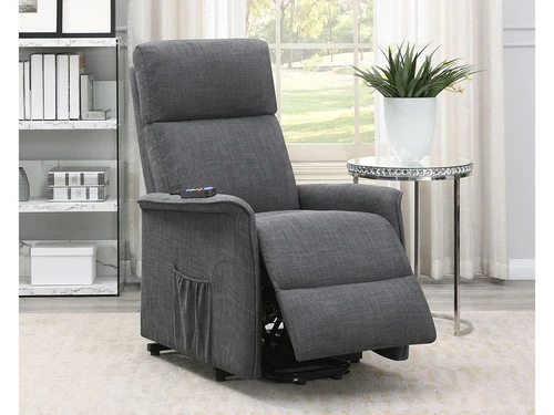 Easily stand on your feet with the assistance of this power lift chair. With an integrated heat and massage function, you’re bound to always feel your best. This piece is upholstered in soft performance fabric with cool gel memory foam cushioning. Two convenient storage pockets are attached to the frame to keep the remote close by. Charge your smart devices with the built-in USB ports within close reach.