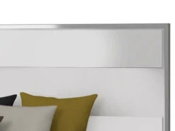 The Infinity Bed is the newest trend bed. The simplicity of the monochromatic glossy white color balance the visual movement created by the tiles placed on top of the front panels. The L-shaped metal has the same depth as the tiles and complements the check design with symmetric geometric forms that go left-right and top-bottom. White glossy color and stainless-steel finish are classic in modern design. The bedsides and footboard are assembled with cam-lock hardware that guarantees precision and sturdiness.