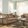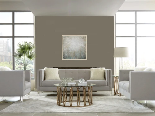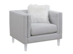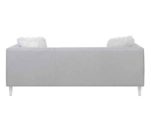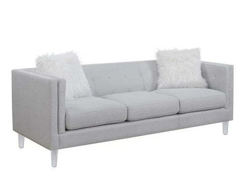 Isadora living room, features acrylic legs trim tuxedo frame gives the living room or study a buttoned-up sense of elegance while sheltering in comfort with Euro-style interior bolsters. Upholstered in fabric, this boutique-style sofa features a soft continuous button-tufted back and 2 firm seat cushions. The acrylic leg special feature gives an eclectic touch to this special piece. Accent pillows are included.Â