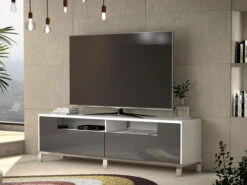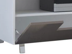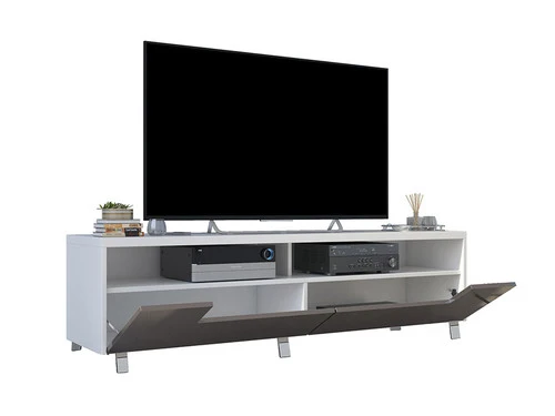 The newest addition to our TV Consoles, the Joy in umber with white top. The large top surface provides plenty of space for your television.With open shelves, concealed storage, and ample space to serve all your media necessities, the piece is not only convenient but also keeps your favorite entertainment accessories neatly stowed away. Media holes provide wire management and keep your room looking seamless and sleek.
