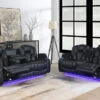 The Ketsy Dual Power Recliners Sectional comes complete with floor lighting, cup holders, and two roomy storage consoles. This set invites us to rest and relax while bringing a modern touch into your home. Material: Breathable Polyurethane.