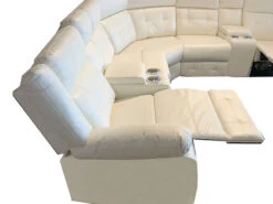 The Ketsy Dual Power Recliners Sectional comes complete with floor lighting, cup holders, and two roomy storage consoles. This set invites us to rest and relax while bringing a modern touch into your home. Material: Breathable Polyurethane.