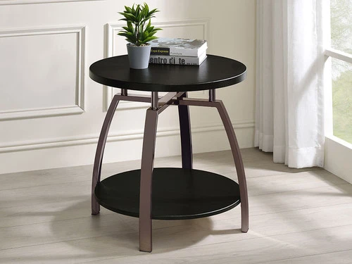 All guests will complement the stunning style of this contemporary coffee table. A dark gray finish makes this a versatile piece with a stunning presence in your space. Supported by a dramatically angled base, the metal construction is durable and attractive. Find a center shelf to display your favorite decor and small baskets. Use this dark gray coffee table next to an armchair for upgraded style.