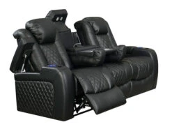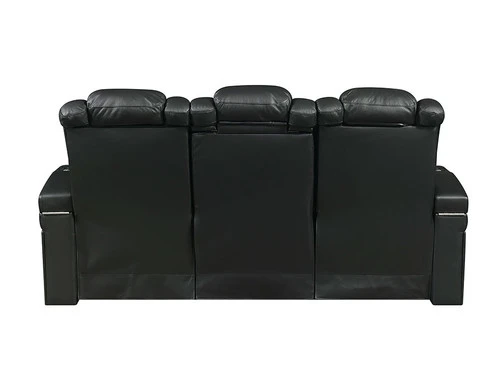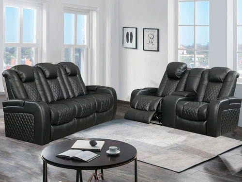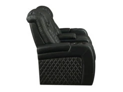 This Sofa set will be your favorite place to relax and enjoy with the Lisboa Power Recliner. This set comes in black leatherette upholstery with diamond accent quilting and contoured bucket seating for extra support and comfort, in a modern look. When it comes to comfort, you’ll love the reclining bucket seat and its power-adjustable headrest that offers a custom comfortable angle for watching TV. It’s also convenient: illuminated cup holders, built-in power button with a USB port on the controller, flip-up padded armrest with hidden storage. It is sure to become a hit in any home.