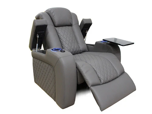 This Recliner will be your favorite place to relax and enjoy with the Lisboa Power Recliner. This Recliner comes in gray upholstery with cross stitching , lattice detailing, with a modern look. This Recliner comes in black upholstery with cross stitching, lattice detailing, and a modern look. When it comes to comfort, you’ll love the reclining bucket seat and its power-adjustable headrest that offers a custom comfortable angle for watching TV. It’s also convenient: illuminated cup holders, built-in power button with USB port on the controller, flip-up padded armrest with hidden storage. It is sure to become a hit in any home.