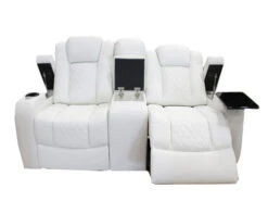 – Sofa features a drop-down table with LED reading lights, an A/C power port, cup holders.