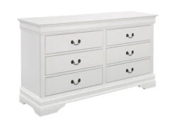 It combines the modern and classic design of this collection with the intense tones and clean lines of its queen cappuccino bed. Displaying the classic Louis Philippe style, the headboard is slightly taller than the stirrup. Geometric shapes constructed with wood veneer and selected hardwoods make up the frame. Honor classic simplicity with the two-drawer bedside table and a beautiful chest of six very spacious drawers. With an exposed wood grain, the warm color creates a cozy aura in a room.