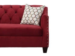 Transitional modern breakfront arm style in a lush velvet fabric. Some outstanding features include reversible bench seat cushions, tufted back, pewter nail-heads, and colorful patterned accent pillows.Â