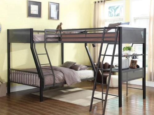 Expand a compatible bunk bed to create a loft space with this T-loft add-on piece. This add-on creates a third sleep space perfect for sleep-overs. The lower space includes a workstation. Perfect for adding functionality without taking up precious floor space. A black/gunmetal finish looks sharp and works for kids of all ages.